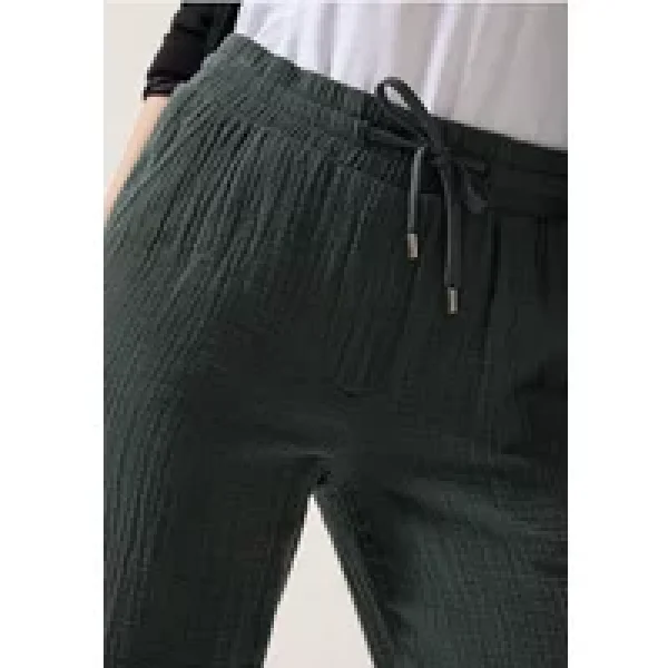Deze nonchalante mousseline broek in de stijl Tracey van CECIL voor dames is de perfecte metgezel voor ontspannen dagen. Het model Mid Waist, de Slim Legs en de elastische tailleband met trekkoord zorgen voor een comfortabele pasvorm en een hoog draagcomfort. Ze zijn gemaakt van puur katoen en zijn bijzonder comfortabel.