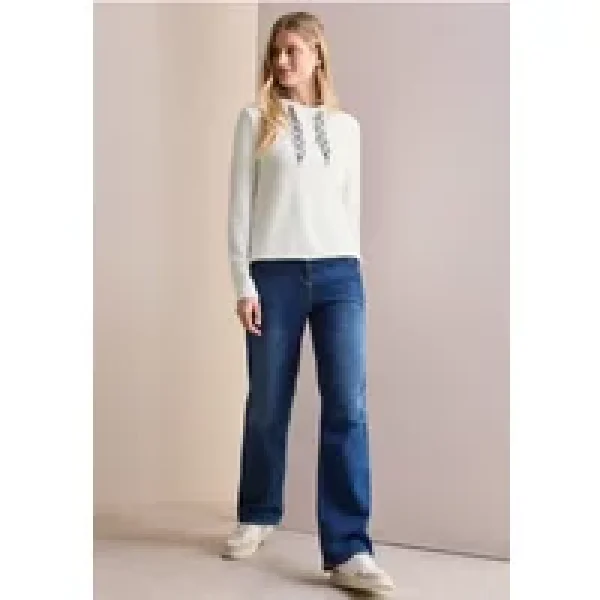 Dit ottomanshirt van CECIL voor dames heeft een trechtervormige hals en een stijlvol tunnelkoord met een bedrukte band. De lange mouwen en de materiaalmix met stretch zorgen voor een hoog draagcomfort. Ideaal voor een modieuze, casual outfit.