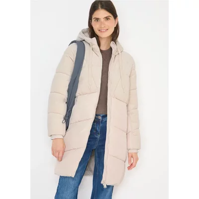 De CECIL puffer coat voor dames heeft een spannende corduroy mix en een modern gewatteerd patroon. De 2-weg ritssluiting, capuchon met trekkoord en ritszakken met fleecevoering bieden functionele extra's bij koud weer. Ton-sur-ton details ronden de look af en maken van deze jas een comfortabele alledaagse favoriet met stijl.