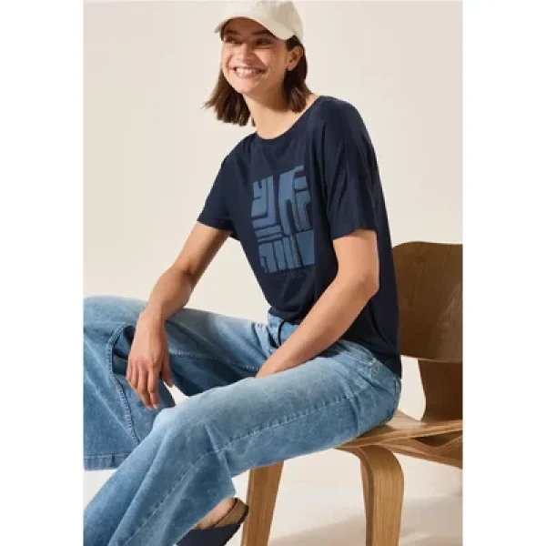 Dit Shirt van CECIL voor dames heeft een casual linnen look en een grafische print op de voorkant. De boothals en korte mouwen zorgen voor een ontspannen stijl. De lichtgewicht materiaalmix voelt comfortabel aan op de huid.