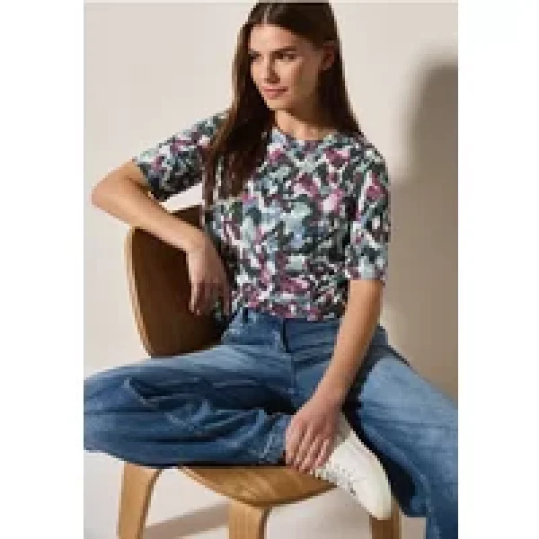 Dit gedessineerde Shirt van CECIL voor dames heeft een modieuze burnout-look. De ronde hals en korte mouwen geven het een klassieke touch, terwijl het grafische patroon een echte blikvanger is. Luchtig, licht en perfect voor zomerse outfits.