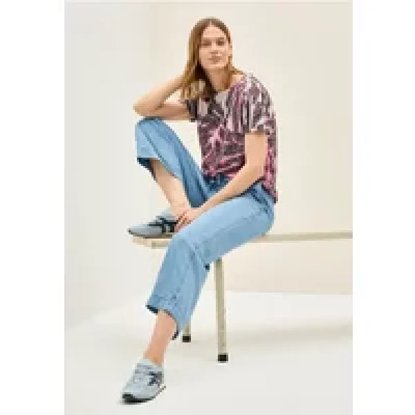 Met een grafisch patroon en kleurverloop geeft dit vrouwelijke Shirt van CECIL een modieuze lichtheid aan je look. De elastische zoom en boothals zorgen voor een vrouwelijke pasvorm. De comfortabele materiaalmix maakt het perfect voor warme dagen.