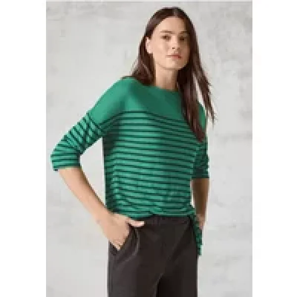 CECIL damesshirt met knoop in zoom, Gestreept shirt, Boothals, 3/4 mouwen, Knoop in zoom, Zacht en comfortabel