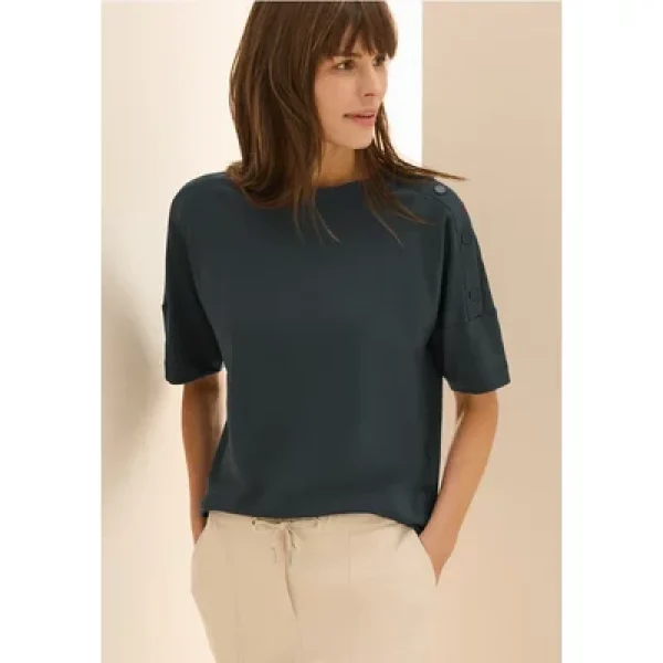 Dit Shirt van CECIL heeft een knoopdetail op de schouder voor een modieus accent. De ronde hals en de katoenmix met stretch zorgen voor een comfortabele pasvorm. Een veelzijdig Shirt voor elke dag.