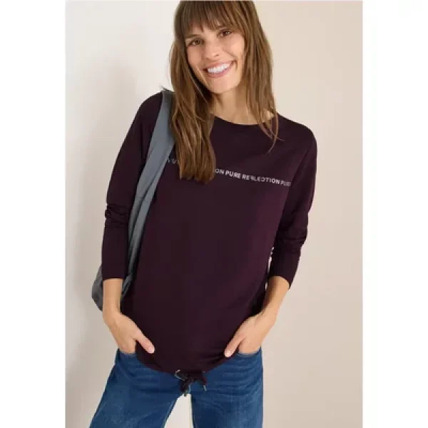 Dit damesshirt met lange mouwen van CECIL heeft subtiele opschriften en een nonchalant trekkoordje aan de zoom en is een stijlvolle metgezel voor elke dag. De boothals en het zachte materiaal maken het comfortabel om te dragen. Perfect voor ontspannen looks met een vleugje statement.