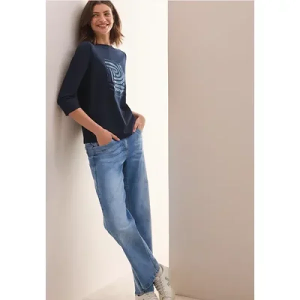 Dit CECIL-shirt voor dames heeft een grafische print op de voorkant en een boothals. De 3/4 mouwen maken het een stijlvol alledaags item, terwijl de katoenmix met stretch zorgt voor een hoog draagcomfort.