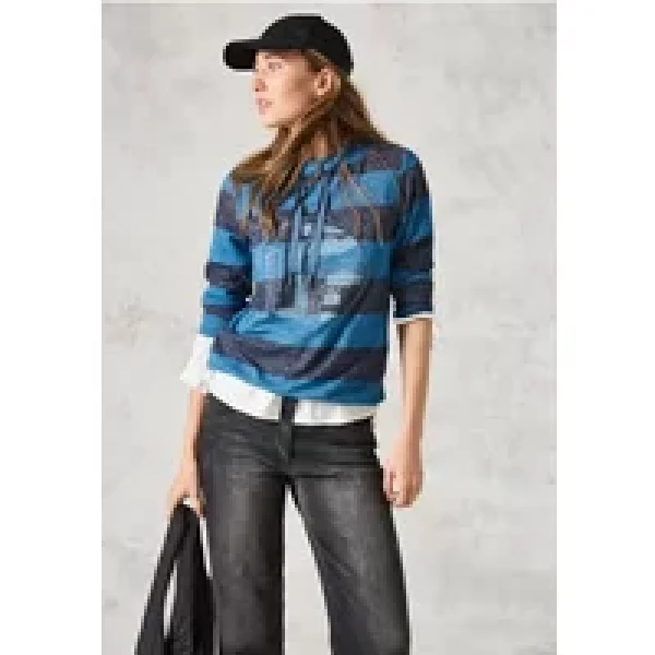 Dit bedrukte overhemd van CECIL voor dames is een stijlvol stuk. Het gestreepte shirt heeft een kraag met trekkoord en lange mouwen. Een elastische zoom en de zachte viscosemix zorgen voor optimaal draagcomfort.