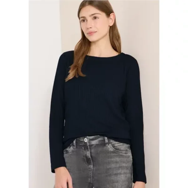 Met een verticale structuur en boothals is dit shirt met lange mouwen van CECIL voor dames een stijlvolle blikvanger. De viscosemix met stretch is aangenaam zacht om te dragen. Ideaal voor tijdloze looks met raffinement.