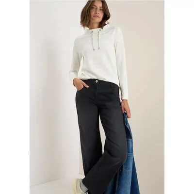 Dit Shirt met structuur met lange mouwen van CECIL voor dames heeft een vrouwelijke trechtervormige hals en een fijn all-over dessin. De viscosemix met stretch voelt bijzonder comfortabel aan. Ideaal voor comfortabele en stijlvolle alledaagse looks.