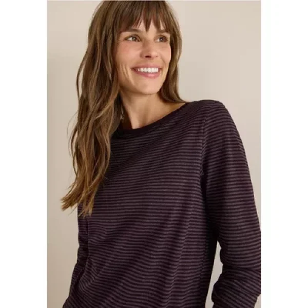 Dit CECIL Shirt voor dames heeft subtiele, ton-sur-ton strepen en een vrouwelijke boothals. De Stretch zoom en zachte katoenmix zorgen voor een comfortabele pasvorm. Perfect voor stijlvolle en toch ontspannen outfits.