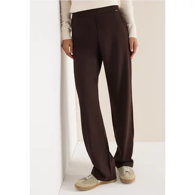 De damespantalon Neele van CECIL is gemaakt van comfortabele jerseystof en heeft een ontspannen pasvorm met een loose fit, High Waist en rechte pijpen. Een elastische tailleband en steekzakken maken hem bijzonder comfortabel - perfect voor gezellige alledaagse looks.