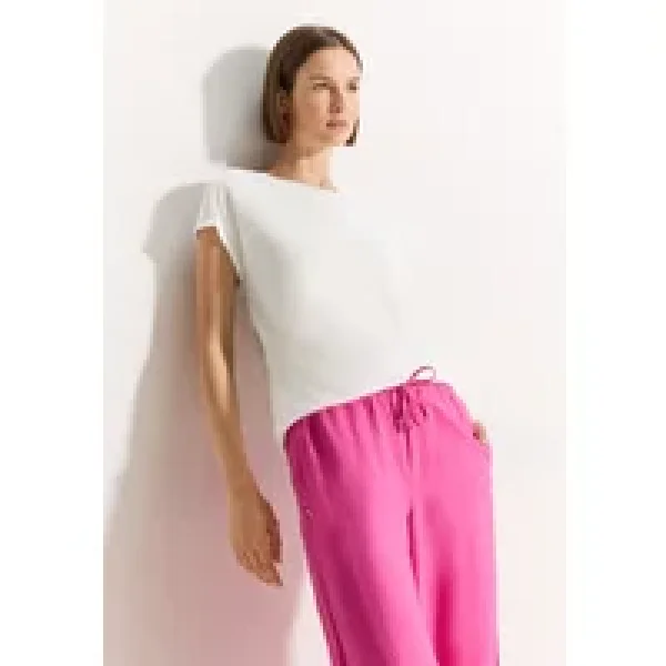 CECIL dames-T-shirt met kantdetail, shirt met korte mouw, U-boothals, elastische tailleband, luchtig kant op de schouder, effectgaren look