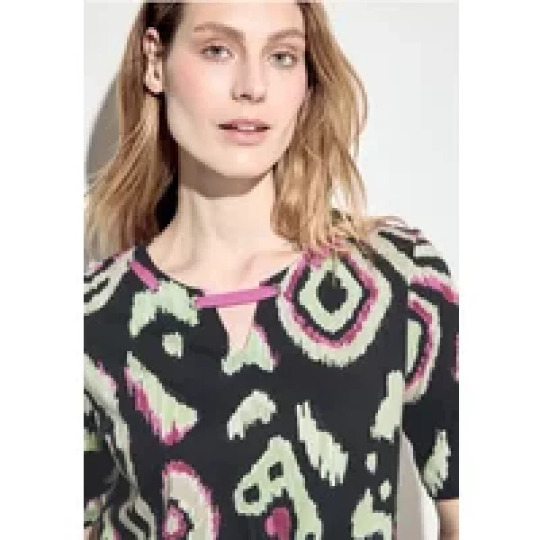 CECIL, dames-T-shirt, print, stringdetail, ronde hals met split