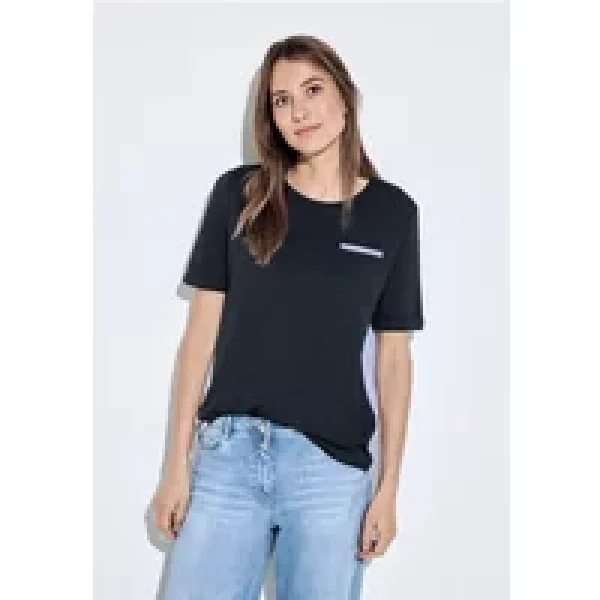 CECIL dames-T-shirt, van voren effen aan de achterkant strepen, borstzak met gestreept element, aangename materiaalmix, ronde hals