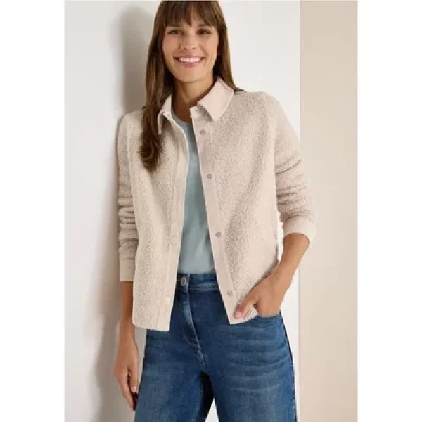 Dit teddyjack van CECIL voor dames combineert zacht comfort met een casual corduroy look. Corduroy details op de kraag en borstzakken zetten accenten, terwijl de knoopsluiting, steekzakken en lange mouwen met manchetten de overhemdstijl benadrukken. Ideaal voor knusse herfstlooks met een modieuze twist.