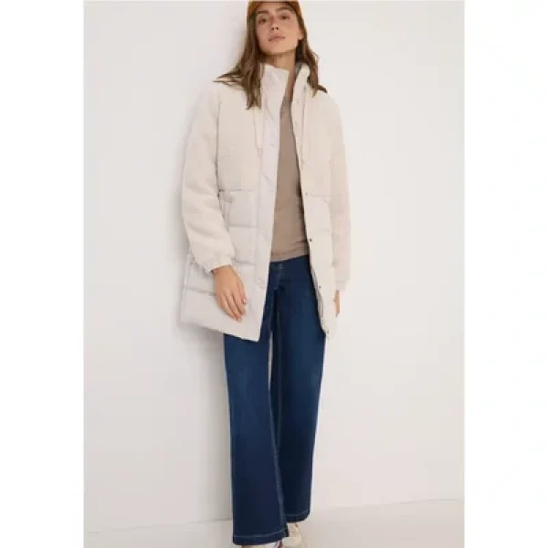 Deze damesjas van CECIL heeft een spannende textuurmix van een knusse teddy bovenkant en een onderkant met een gewatteerde look. Een opstaande kraag met trekkoord en steekzakken met drukknopen benadrukken de sportieve look. De 2-weg ritssluiting en ton-sur-ton details maken van deze jas het perfecte feel-good stuk voor koude dagen.