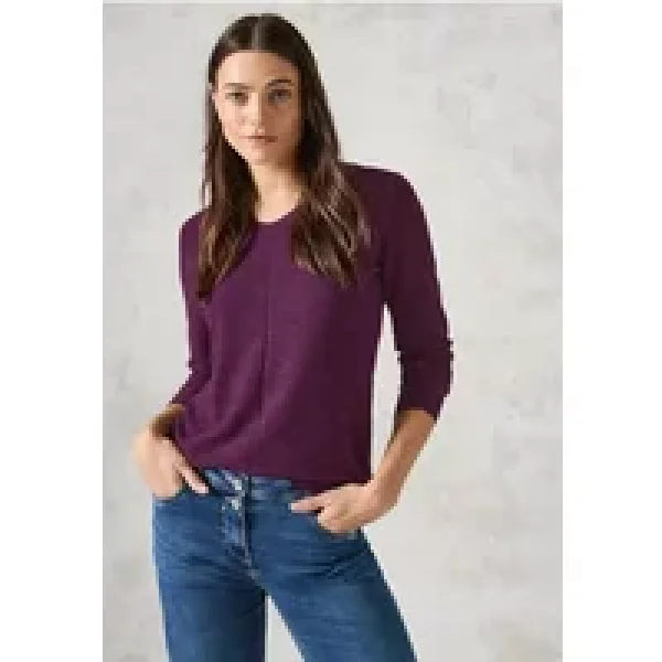 Cecil -Structured v-neck Pullover-Dames Trui-Heather Berry Melange -maat M