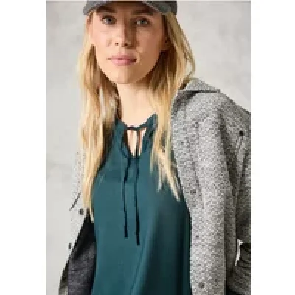 De effen tuniek van CECIL voor dames heeft een ronde hals met split en bandjes en manchetten met lange mouwen en knopen. De elastische zoom en zachte viscose zorgen voor een comfortabele pasvorm. Perfect voor een ontspannen look.