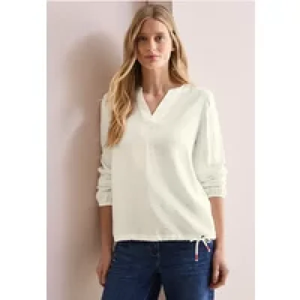 Deze effen tuniek van CECIL voor dames is bijzonder knus dankzij de comfortabele modalmix. Het tunnelkoord aan de zoom zorgt bovendien voor een perfecte pasvorm. Lange mouwen en een split in de hals ronden de look van de blouse af.