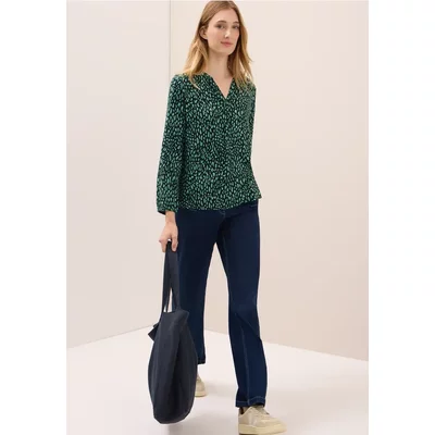 Deze tuniekblouse van CECIL voor dames heeft een grafisch dessin en een vrouwelijke split-hals met knoopsluiting. De lange mouwen met elastische manchetten bieden een comfortabele pasvorm. De zachte viscose stof zorgt voor een vloeiend, lichtgewicht gevoel.