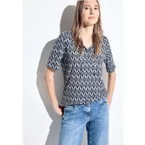 CECIL damestuniek T-shirt met print, zomershirt met korte mouw, halslijn met split en bandjes, elastische band, borduursel aan de hals, zachte katoen-modalmix