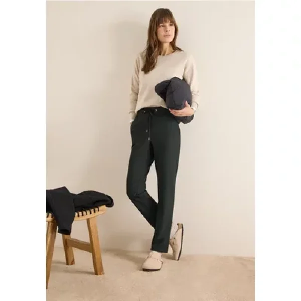 De Tracey-broek van CECIL voor dames brengt een frisse wind door je garderobe met zijn tweekleurige look, Mid Waist en Slim Legs. De elastische tailleband met trekkoord zorgt voor een comfortabele pasvorm - perfect voor casual outfits met stijl.