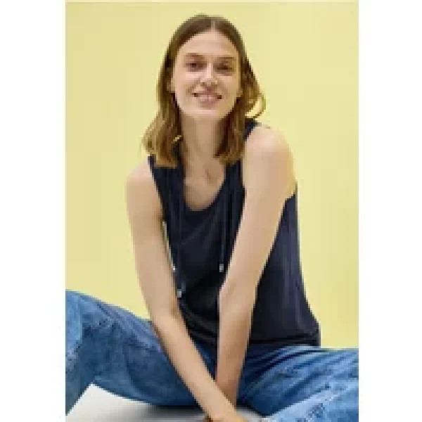 Deze jersey top van CECIL voor dames heeft een eenvoudige V-hals met bandjes en een mouwloos ontwerp. De zachte katoen-modal stof maakt het comfortabel om te dragen. Ideaal om te combineren en je goed te voelen.