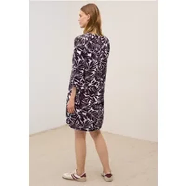 Met zijn grafische all-overpatroon en vrouwelijke V-halslijn is deze zomerjurk voor dames van CECIL een echte blikvanger. De fijne structuurstof voelt aangenaam aan op de huid, terwijl de 3/4-mouwen lichtgewicht comfort bieden. Perfect voor ontspannen zomermomenten met stijl.