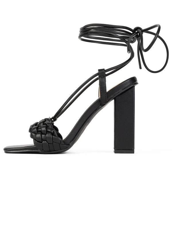 Type hak: Blokhak; Materiaal: Imitatieleder; Motief: Effen; Materiaal: Imitatieleer; Schoenneus: Open toe; Hakhoogte: High heels (> 10 cm)