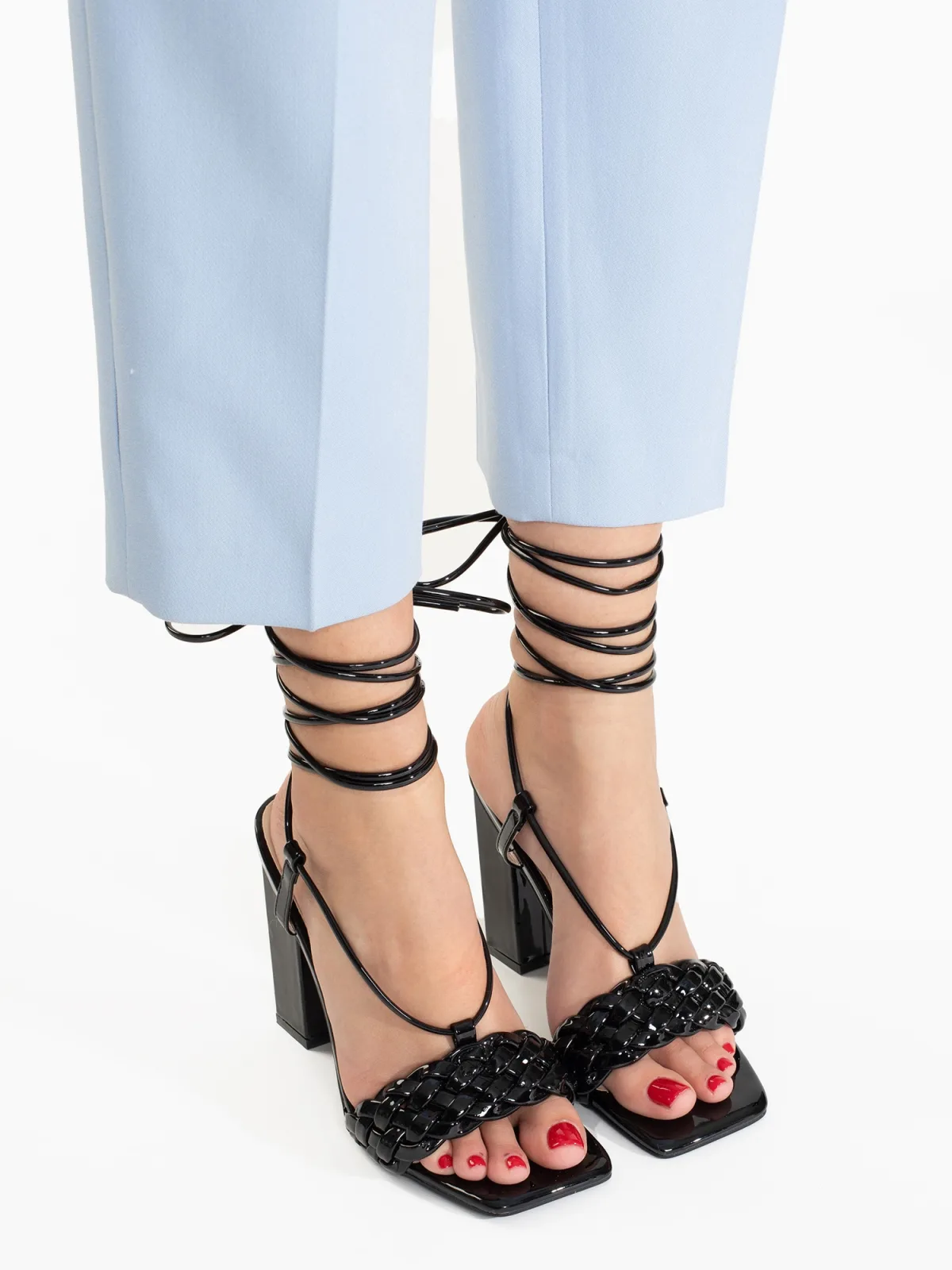 Type hak: Blokhak; Materiaal: Imitatieleder; Motief: Effen; Materiaal: Imitatieleer; Schoenneus: Open toe; Hakhoogte: High heels (> 10 cm)