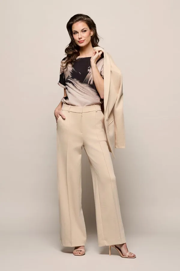 De Celia pantalon in crème van Mart Visser combineert tijdloze elegantie met ultiem draaggemak. Deze stijlvolle broek is gemaakt van een lichte, soepele stof met een vleugje stretch, waardoor hij heerlijk comfortabel zit en de hele dag mooi in model blijft. De frisse crèmekleur geeft een luxe, klassieke uitstraling en maakt de pantalon veelzijdig te stylen, van formele meetings tot een chic diner. Het rechte model met een pintuck op de pijpen zorgt voor een slank en lang silhouet. De nauwsluitende pasvorm op de heupen en de iets wijder vallende pijpen vanaf de knie flatteren ieder figuur. Dankzij de elastische tailleband aan de achterzijde sluit de broek perfect aan en behoudt hij een elegante look. Schuine steekzakken aan de voorkant voegen een praktische en eigentijdse touch toe aan dit veelzijdige ontwerp.