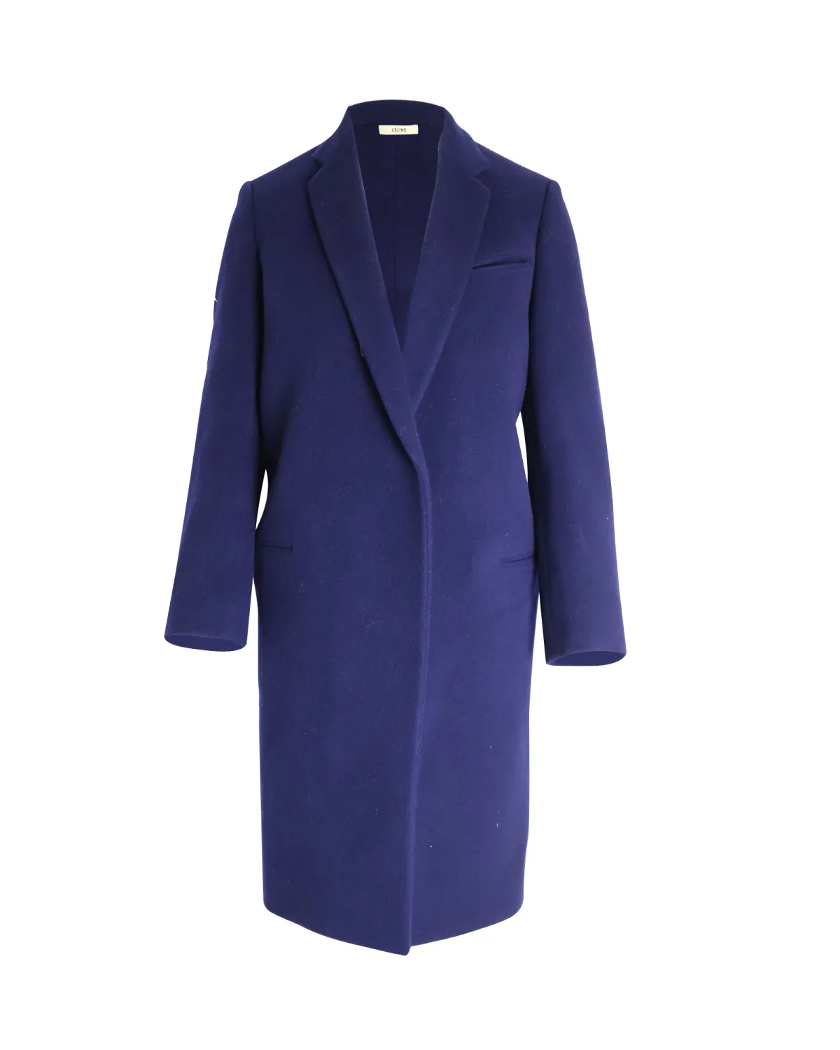 Specificaties: Celine Open-Front Jas in Blauwe Wol