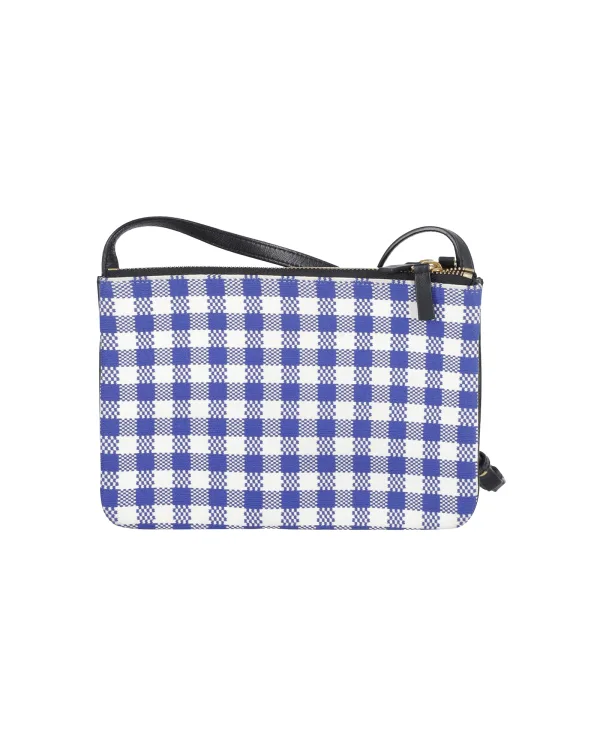 Celine Trio Gingham Schoudertas in Blauw en Wit Katoen
