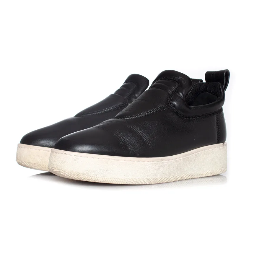 Aanbevolen verkoopprijs Celine, zwarte leren instappers. Dit artikel is in goede staat. Kleine beschadiging op de linkerneus. • STAAT: goede staat • MAAT: 38 • AFMETINGEN BINNENZOOL: 24,5 cm • HAK: 4 cm PLATFORM: 3 cm • MATERIAAL: leer • KLEUR: zwart • ARTIKELNUMMER: 5150