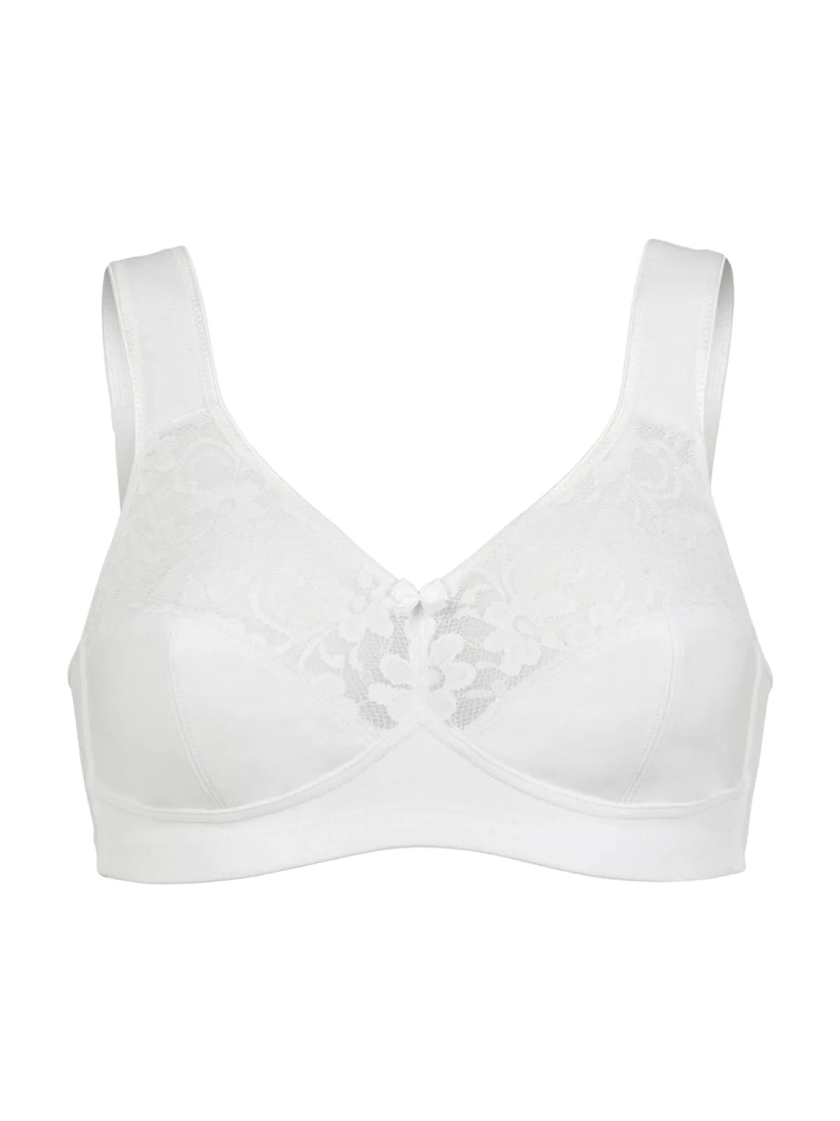 Cup soorten: Soft cup bh; Soort bandjes: Normale bandjes; Bh/bikini type: T-shirt; Beugel: Zonder beugel; Design: Elastische taille/zoom; Type sluiting: Haakjes; Materiaal: Katoen; Motief: Effen; Details: Kant; Extra's: Verstelbare bandjes, Applicaties, Op staal naden