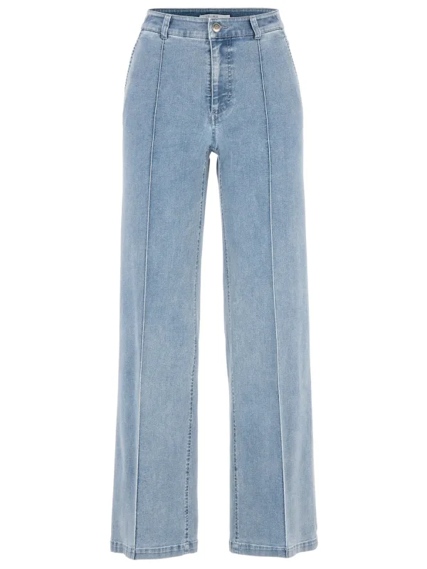 Design: Gevoerde zoom/rand, Ritssluiting, Achterzak, Zakken aan de zijkant, Knop sluiting; Type sluiting: Knoopsluiting; Materiaal: Denim; Motief: Effen; Extra's: Gewassen effect, Riemlussen; Wassing: Light washed; Lengte: Lang/maxi; Pasvorm: Wide leg; Taillehoogte: Mid waist