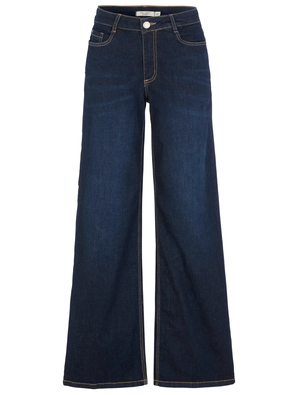Design: Gevoerde zoom/rand, Ritssluiting, 5-pocket-style; Type sluiting: Ritssluiting; Materiaal: Denim; Motief: Effen; Extra's: Gewassen effect, Riemlussen; Wassing: Rinsed/dark washed; Lengte: Lang/maxi; Pasvorm: Wide leg; Taillehoogte: High waist