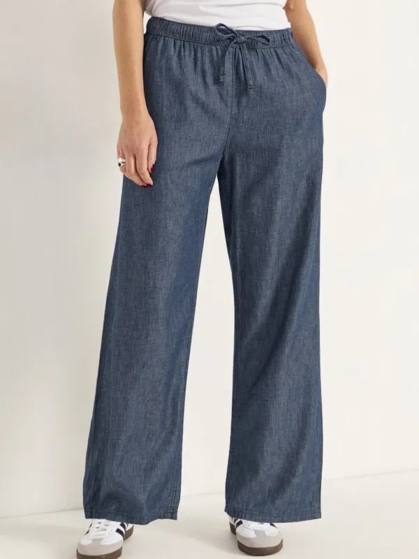 Design: Taille met trekkoord, Elastische taille/zoom; Materiaal: Denim; Motief: Effen; Extra's: Voelt zacht aan; Wassing: Rinsed/dark washed; Lengte: Lang/maxi; Pasvorm: Loosefit; Taillehoogte: Mid waist