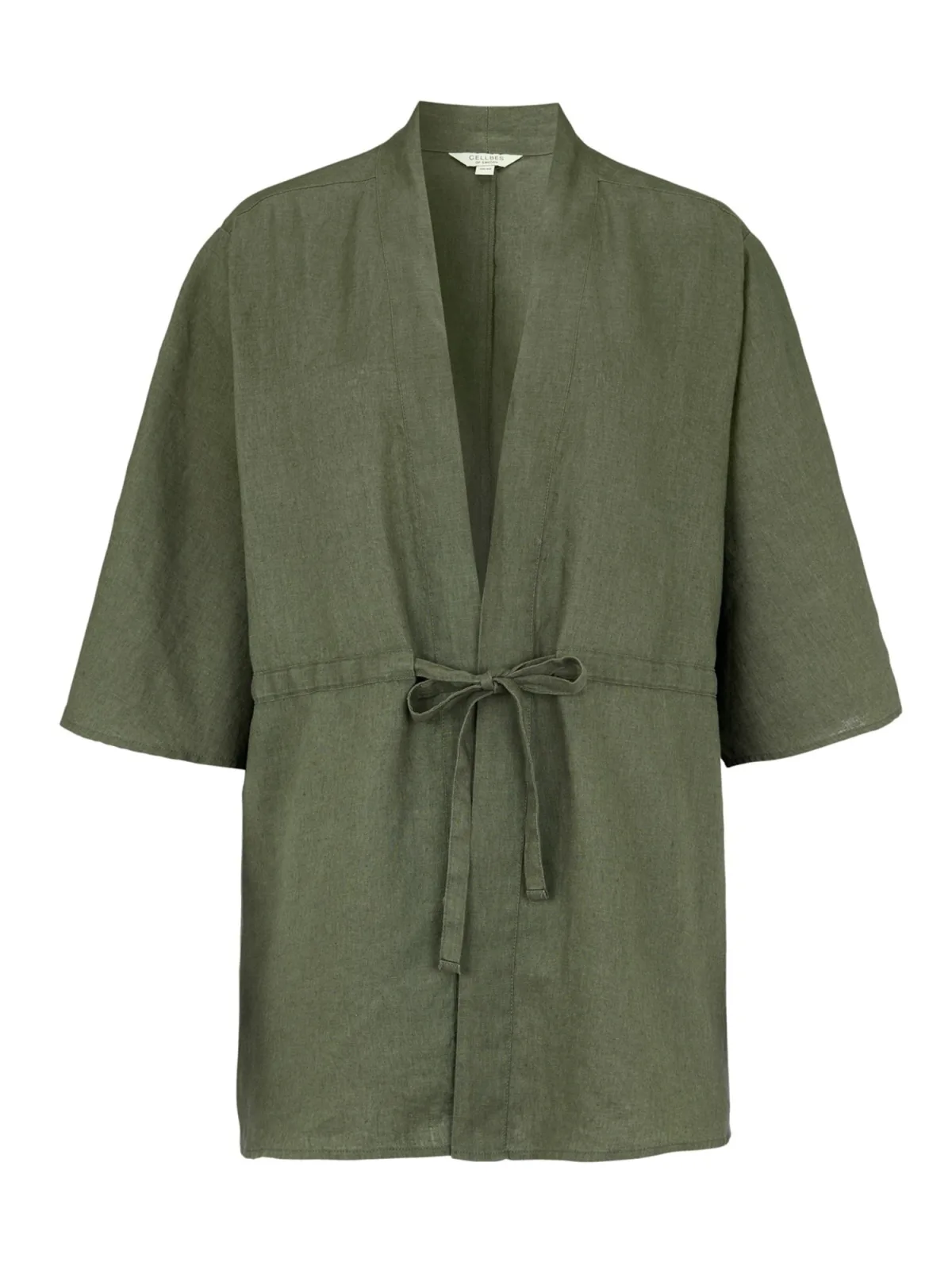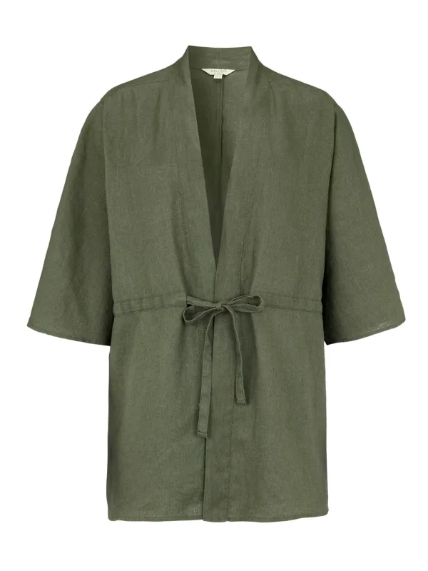Design: Gevoerde zoom/rand, Om te knopen/binden, Brede mouwopeningen; Materiaal: Linnen; Motief: Effen; Details: Gedrapeerd, Wikkel design; Extra's: Koele grip, Luchtige stof; Pasvorm: Losse pasvorm; Armlengte: Halve mouw; Lengte: Normale lengte