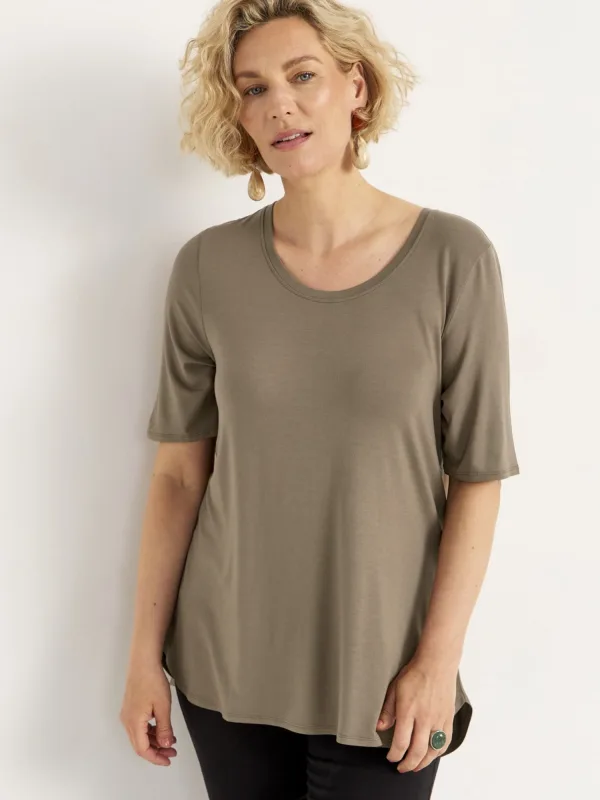 Design: Gevoerde zoom/rand; Materiaal: Jersey; Halstype: Ronde hals; Motief: Effen; Details: Plooien; Extra's: Voelt zacht aan; Pasvorm: Normale pasvorm; Armlengte: Halve mouw; Lengte: Normale lengte