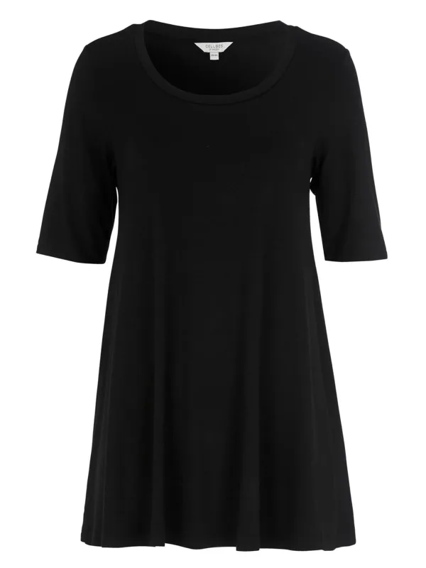 Design: Ronde zoom; Materiaal: Jersey; Halstype: Ronde hals; Motief: Effen; Extra's: Op staal naden; Pasvorm: Wijde pasvorm; Armlengte: Halve mouw; Lengte: Lange pasvorm