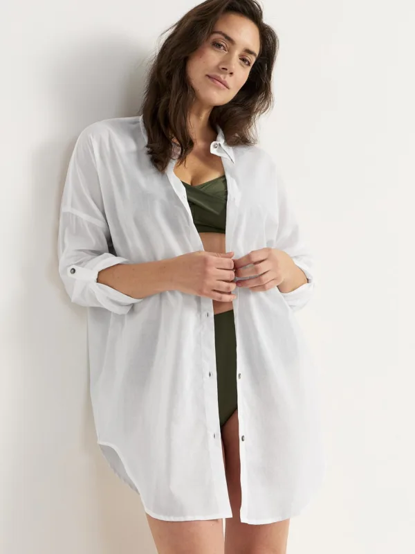 Blouse type: Klassieke blouse; Design: Asymmetrische zoom, Knop placket, Overcut schouder; Type sluiting: Knoopsluiting; Materiaal: Katoen; Motief: Effen; Kraag: Kentkraag; Extra's: Licht transparant, Op staal naden, Voelt zacht aan; Lengte: Kort/mini; Snit: Recht; Pasvorm: Wijde pasvorm; Armlengte: Lange mouw; Lengte: Lange pasvorm