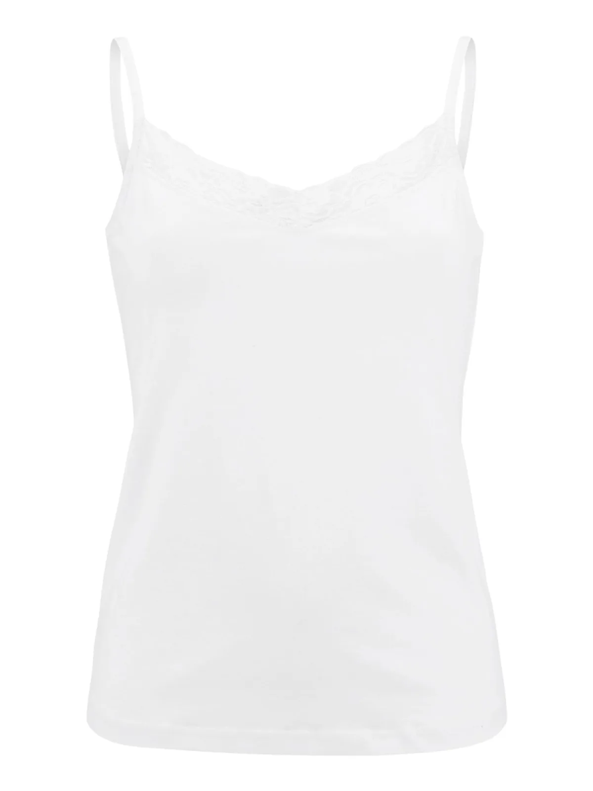 Design: Gevoerde zoom/rand; Materiaal: Jersey; Halstype: V-hals; Motief: Effen; Soort bandjes: Spaghettibandjes; Details: Kant; Extra's: Voelt zacht aan; Pasvorm: Normale pasvorm; Armlengte: Mouwloos; Lengte: Normale lengte