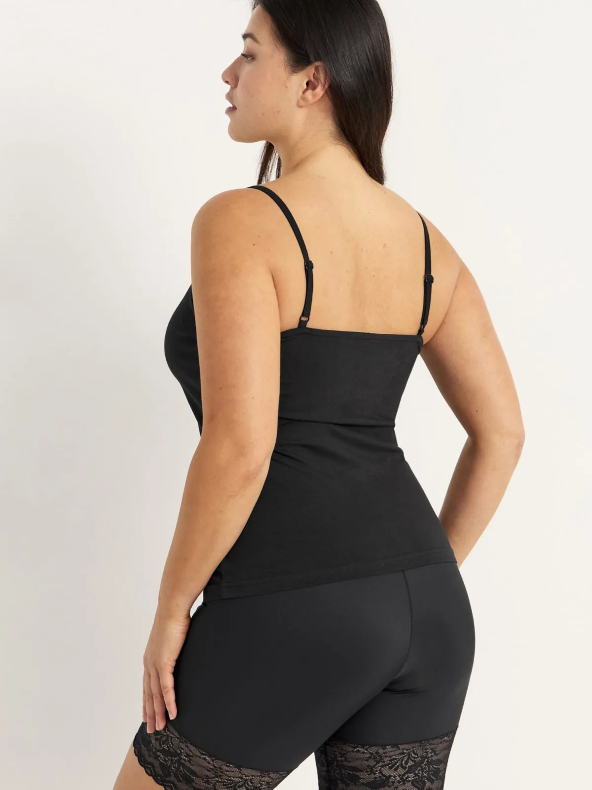 Design: Gevoerde zoom/rand; Materiaal: Jersey; Halstype: V-hals; Motief: Effen; Soort bandjes: Spaghettibandjes; Details: Kant; Extra's: Verstelbare bandjes, Voelt zacht aan; Pasvorm: Normale pasvorm; Armlengte: Mouwloos; Lengte: Normale lengte