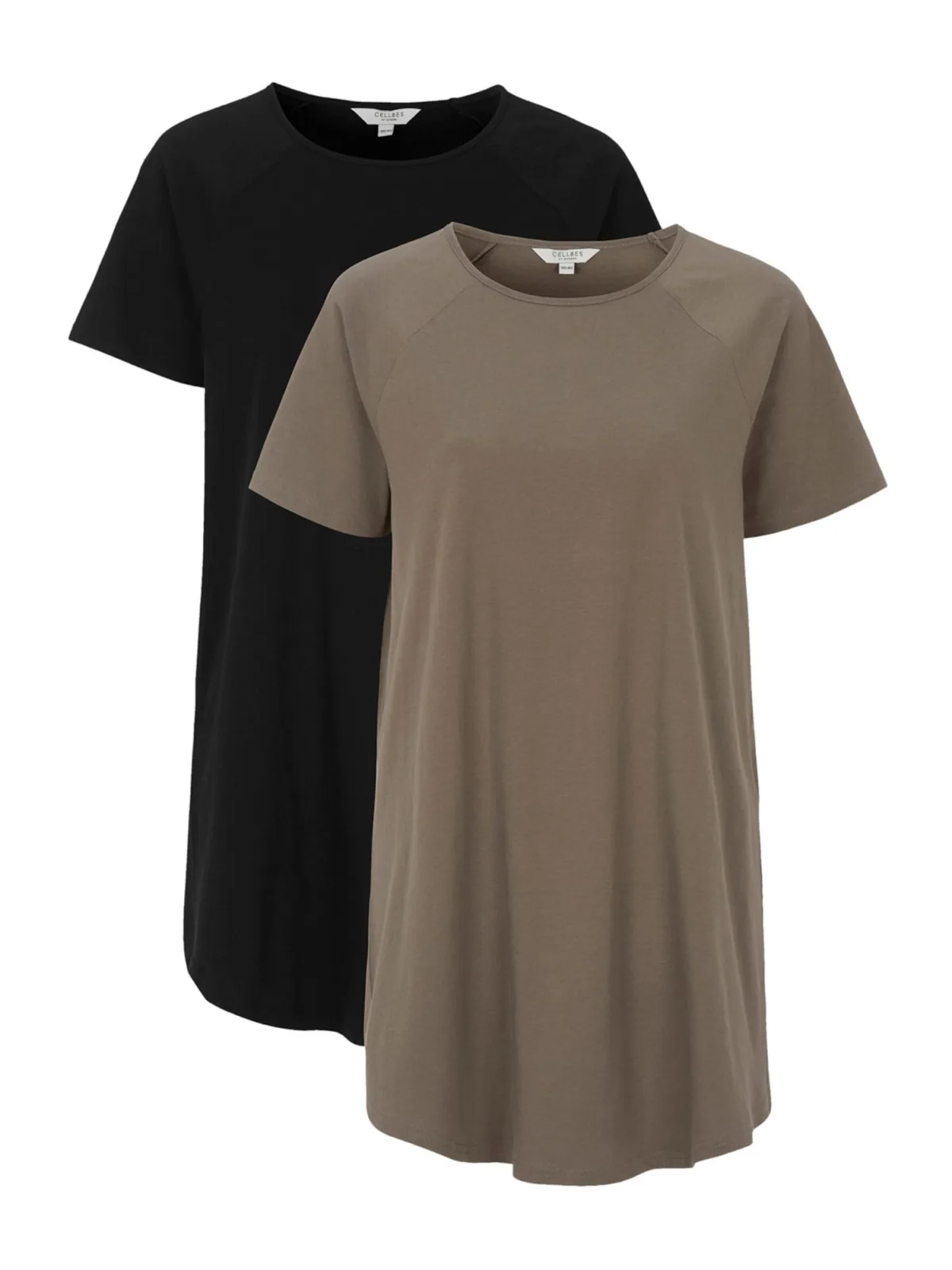 Design: Gevoerde zoom/rand, Ronde zoom; Materiaal: Jersey; Motief: Effen; Kraag: Zonder kraag; Extra's: Op staal naden; Pasvorm: Losse pasvorm; Aantal: 2 Pack; Armlengte: Kwartmouw; Lengte: Lange pasvorm