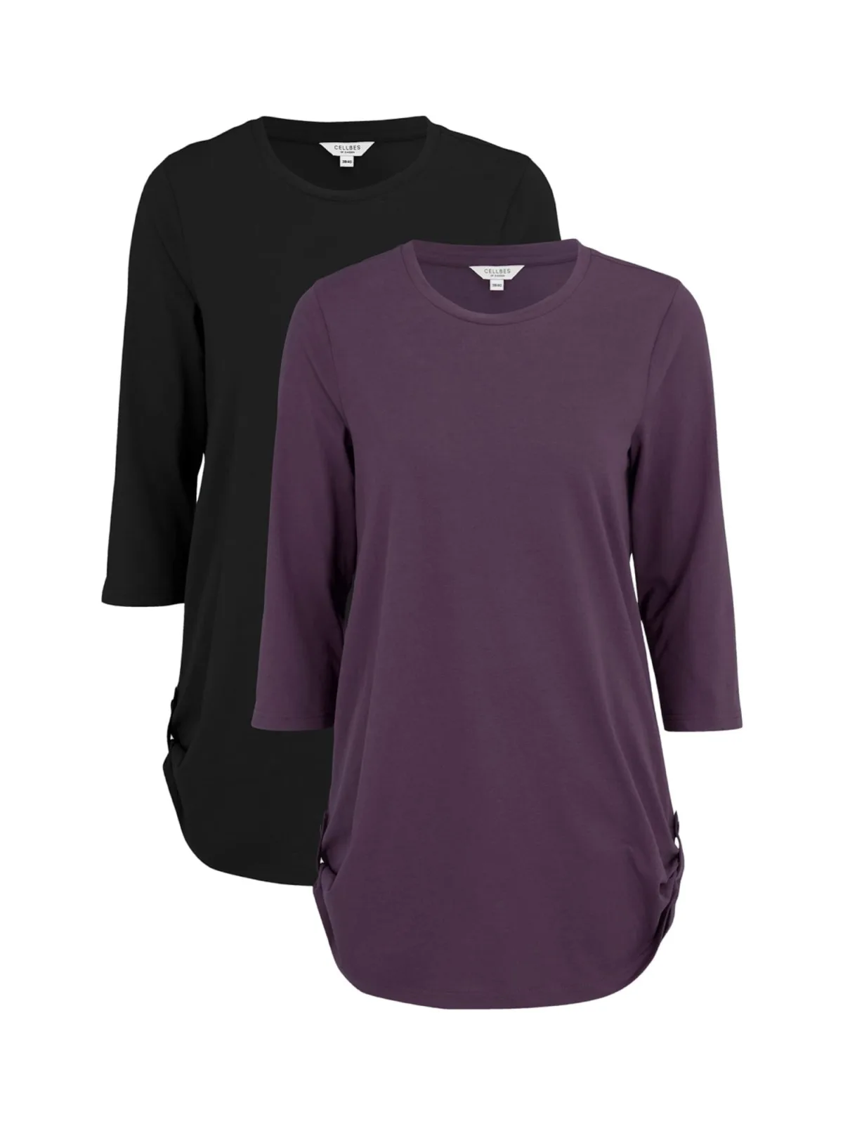 Design: Gevoerde zoom/rand, Nektape; Materiaal: Jersey; Motief: Effen; Kraag: Zonder kraag; Details: Gedrapeerd; Extra's: Op staal naden, Voelt zacht aan; Pasvorm: Normale pasvorm; Aantal: 2 Pack; Armlengte: Driekwart mouw; Lengte: Normale lengte