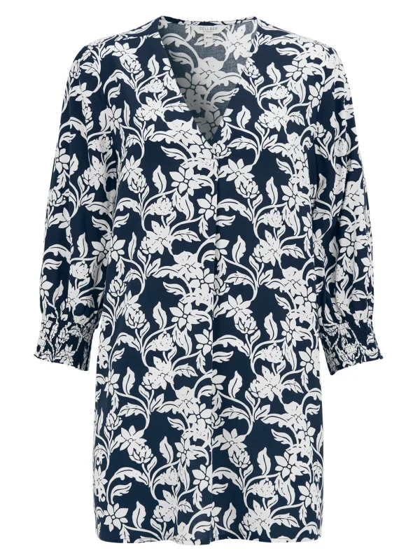 Design: Gevoerde zoom/rand; Materiaal: Viscose; Motief: Bloemenprint; Kraag: Zonder kraag; Details: Plooien, Gedrapeerd; Extra's: All-over patroon; Pasvorm: Losse pasvorm; Armlengte: Driekwart mouw; Lengte: Normale lengte