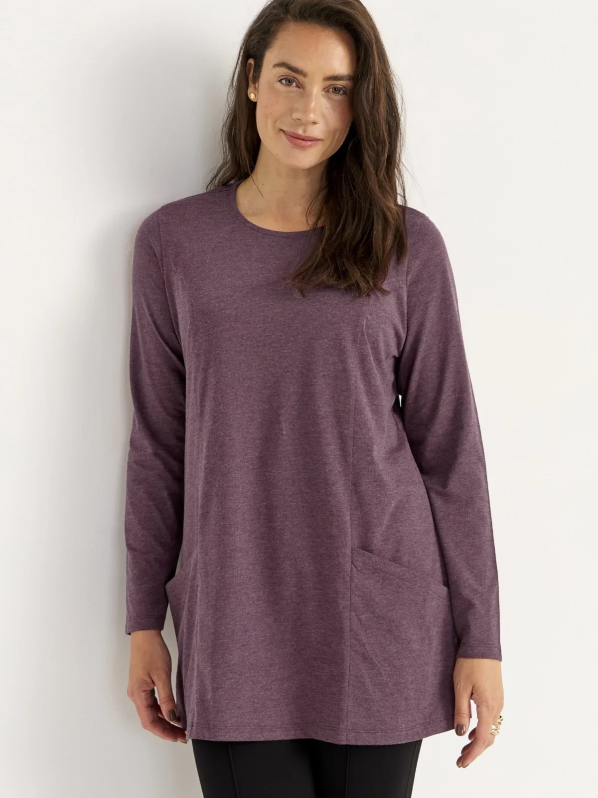 Design: Opgezette zakken; Type sluiting: Slip; Materiaal: Jersey; Halstype: Ronde hals; Motief: Mélange; Kraag: Zonder kraag; Extra's: Op staal naden; Pasvorm: Losse pasvorm; Armlengte: Lange mouw; Lengte: Normale lengte