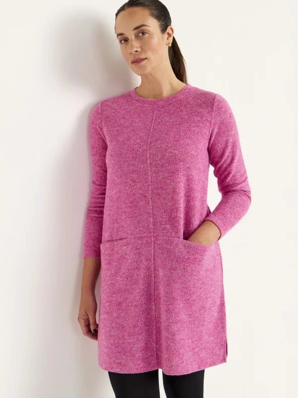 Design: Rechte zoom, Zijdelingse inkepingen, Siernaad; Type sluiting: Slip; Materiaal: Knitwear; Motief: Mélange; Kraag: Zonder kraag; Extra's: Met textuur, Voelt zacht aan; Pasvorm: Normale pasvorm; Armlengte: Lange mouw; Lengte: Lange pasvorm