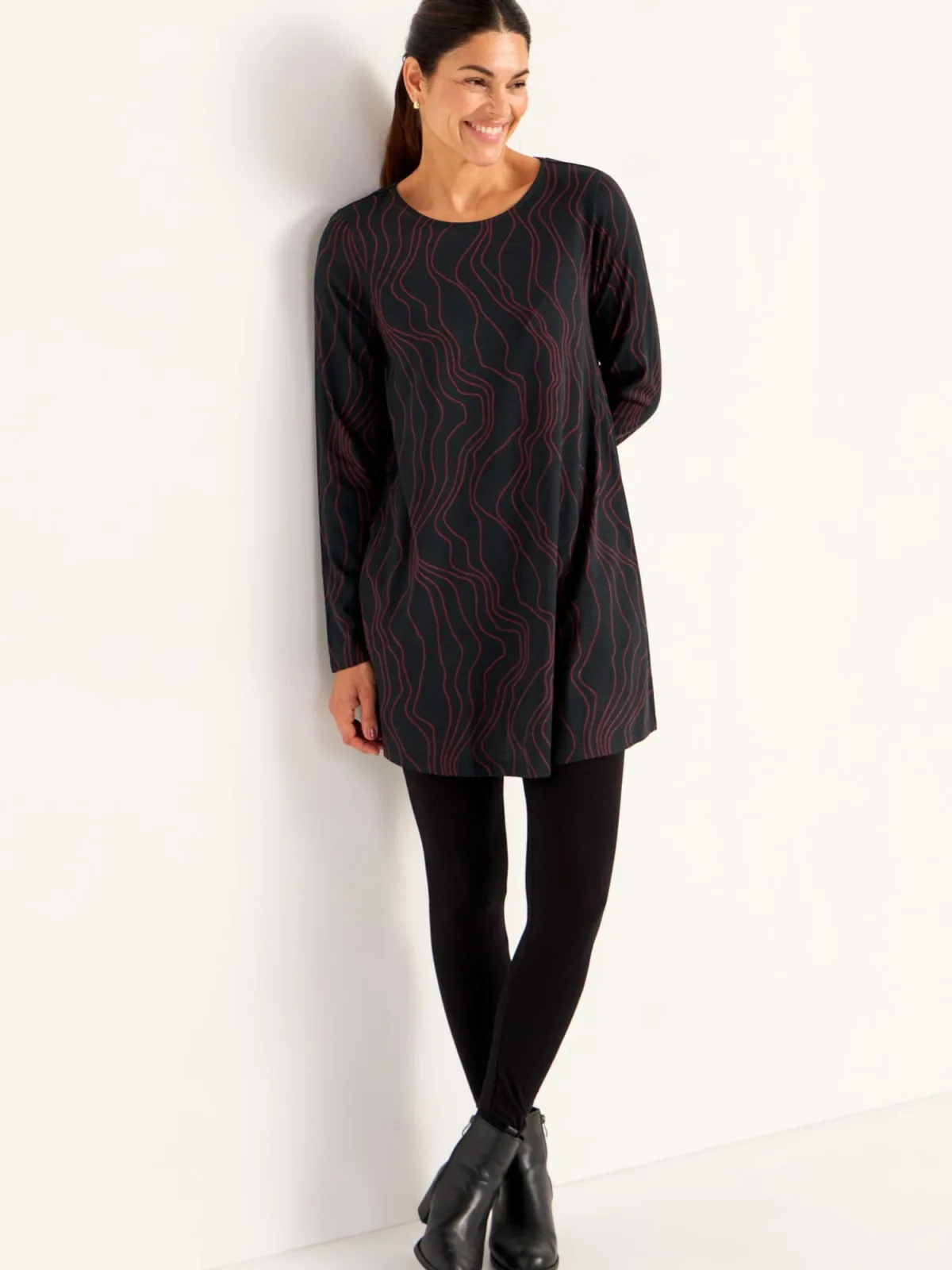 Design: Gevoerde zoom/rand, A-lijn, Zonder kraag, Ronde zoom, Zakken aan de zijkant; Type sluiting: Slip; Materiaal: Jersey; Kraag: Tuniek kraag; Extra's: All-over patroon, Voelt zacht aan; Pasvorm: Losse pasvorm; Armlengte: Lange mouw; Lengte: Normale lengte